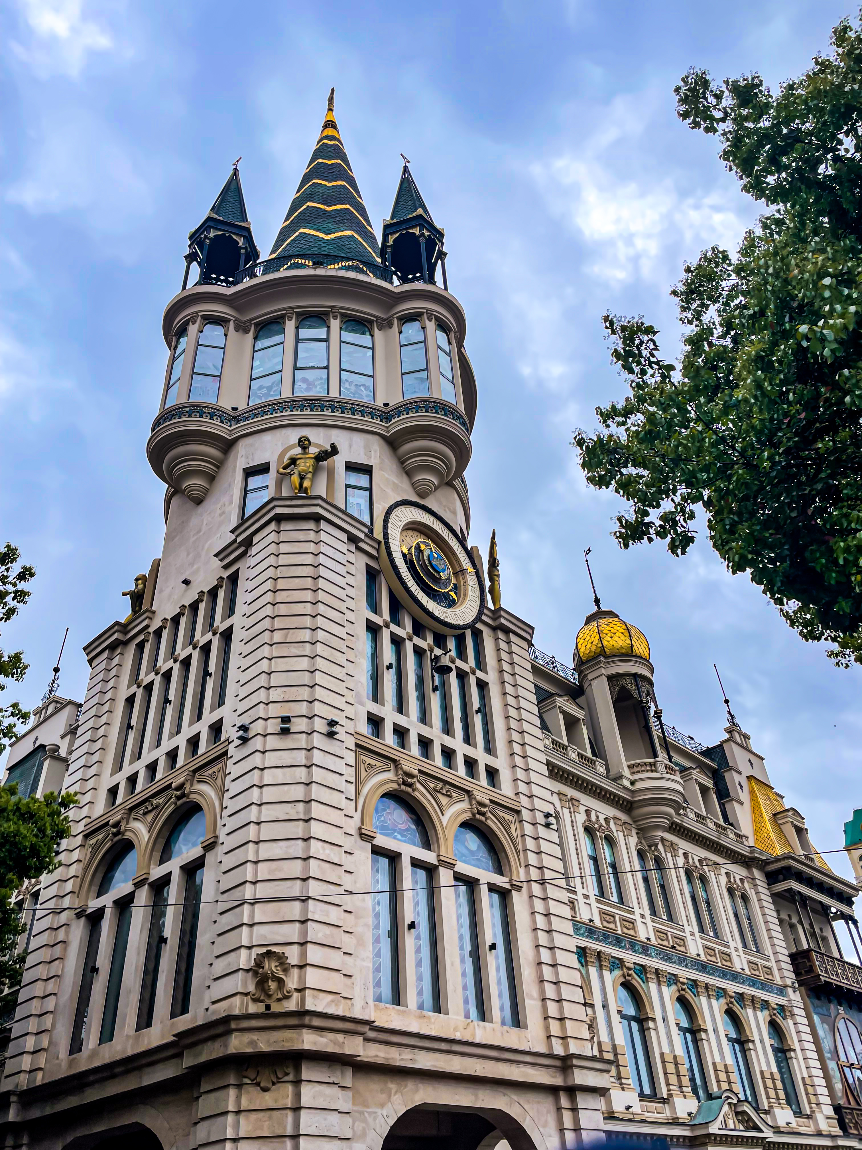 - Europe square is located in the heart of Batumi, making it a key landmark and a popular gathering place for both locals and tourists. The buildings surrounding the square feature eclectic architectural styles, ranging from neoclassical to modern, reflecting Batumi’s diverse cultural influences. The square is beautifully illuminated at night, creating a magical atmosphere. In the corner of Europe Square, you’ll find the spectacular Astronomical Clock, a sophisticated timepiece that displays not only the time but also astronomical information, such as the positions of the sun, moon, and constellations. Designed to educate and fascinate viewers, it showcases intricate mechanisms.