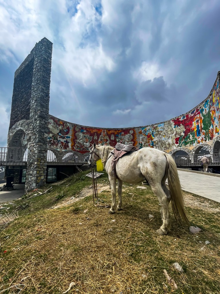- Panorama Gudauri, also known as the Russia-Georgia Friendship Monument, is situated at an elevation of approximately 2,200 meters above sea level. It offers breathtaking views, thrilling outdoor activities, and a vibrant atmosphere that attracts visitors from around the world. The monument features a large circular stone overlooking the Devil’s Valley in the Caucasus Mountains. Inside, a magnificent tile mural spans the entire circumference of the structure, depicting scenes from Georgian and Russian history.