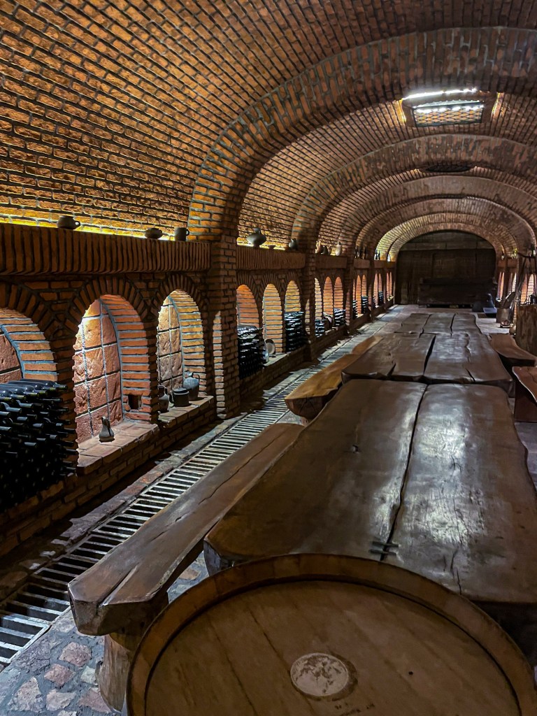 - Winery Khareba, located in Kvareli, is renowned for its extensive wine cellar housed within a tunnel complex that stretches over 7.7 kilometers. Originally constructed for military purposes during the Cold War, these tunnels now provide the ideal environment for aging wine, thanks to their consistent temperature and humidity levels. At the winery, you can enjoy a wine tasting and tour, with prices varying depending on the wines sampled: 25-35 GEL for standard wine tasting and 50-70 GEL for premium wine tasting. You can sample a selection of wines, guided by sommeliers who explain the characteristics of each variety and the unique aspects of Georgian winemaking. Here, you can savor traditional Georgian Qvevri wine, which is naturally fermented and aged in large clay vessels called qvevris, buried underground. While I enjoyed the wine, I wasn’t as fond of the touristy approach. I recommend visiting quickly, as this winery is the largest, but also exploring smaller family-owned wineries where you may feel more welcome and less like just another tourist. The tasting and tour take about 25 minutes. One of their standout products is grape seed oil, which has a uniquely light and special flavor that you’ll want to savor—there’s nothing quite like it. With a car and private driver from GoTrip, you can visit more wineries in one day, such as the Telavi Wine Cellar or Marani Wine Cellar.
