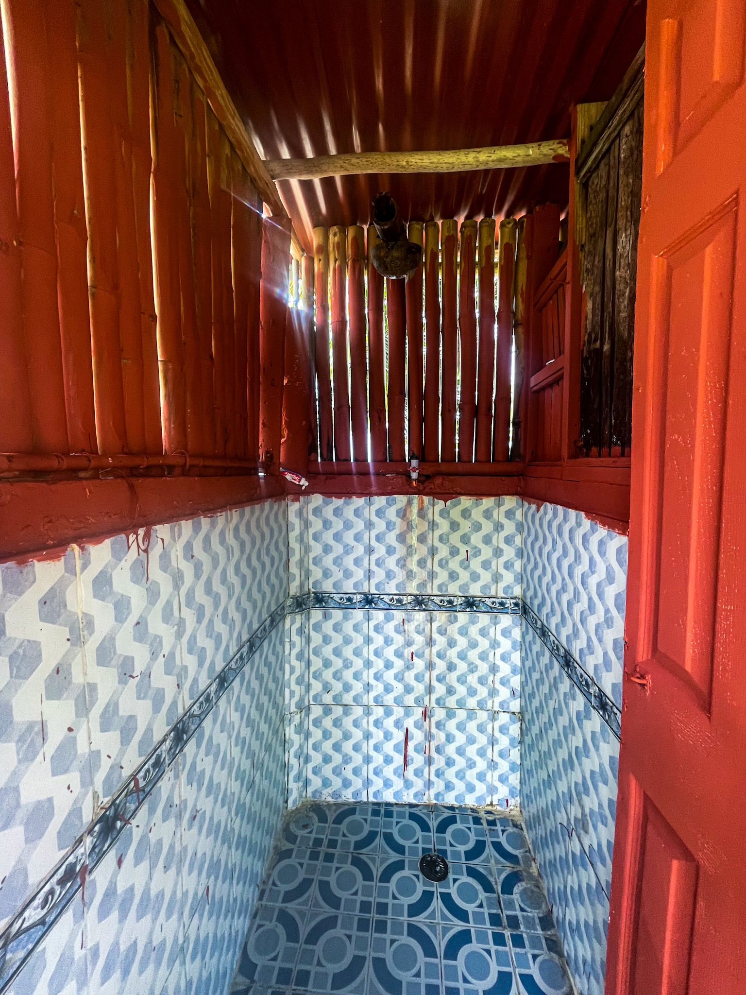 There were only two private rooms of this type available, and fortunately, our friends stayed in the hut next to ours. The terraces of these huts are situated close to each other, creating a cozy and connected atmosphere. However, one peculiar feature of the room is its open upper space, which allows birds to enter freely. On one occasion, a bird left an unwelcome surprise on the bed. Let’s hope fortune favors us next time!